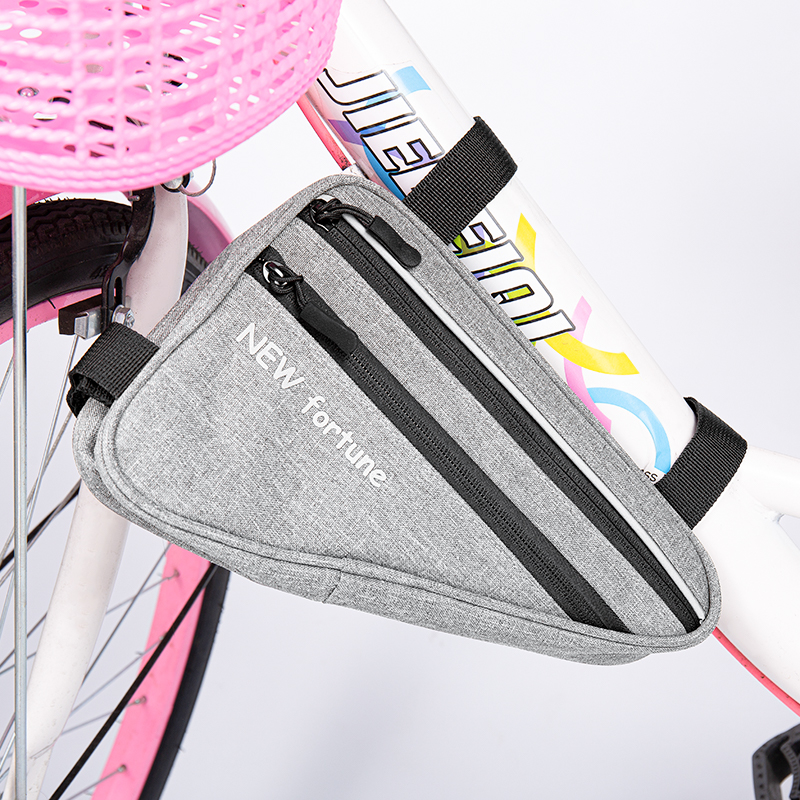 Casa / Prodotti / Borsa per bicicletta / Borsa triangolare per bicicletta impermeabile con nastro riflettente grigio BI-01
