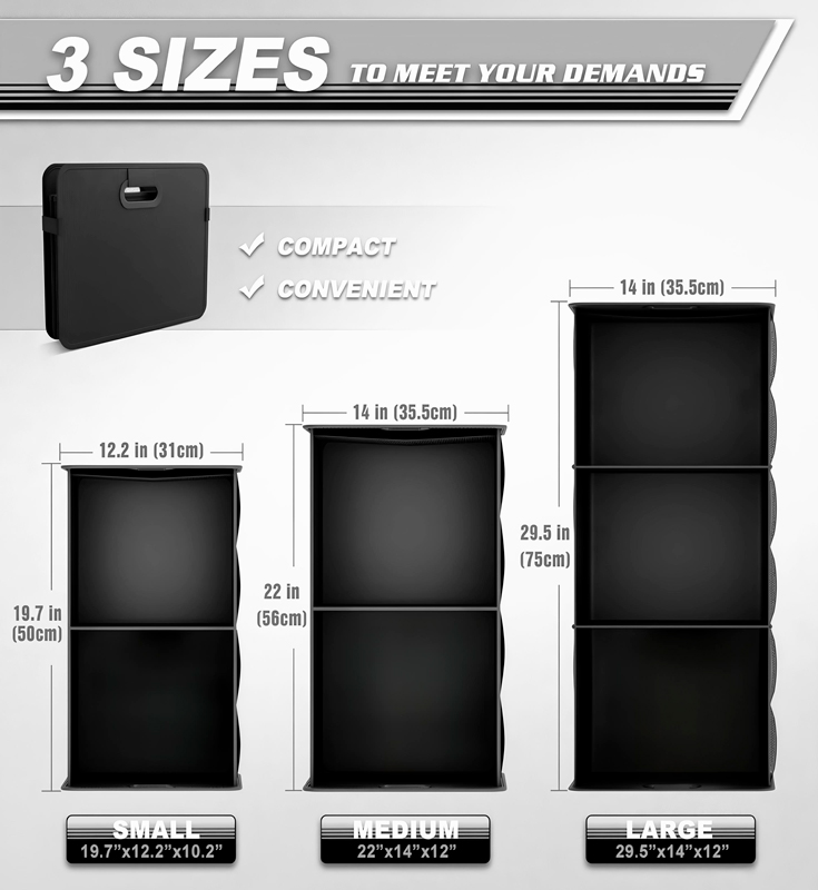 Casa / Prodotti / Borsa portaoggetti per bagagliaio / H-02 Borsa portaoggetti impermeabile pieghevole portatile di 3 dimensioni per qualsiasi auto